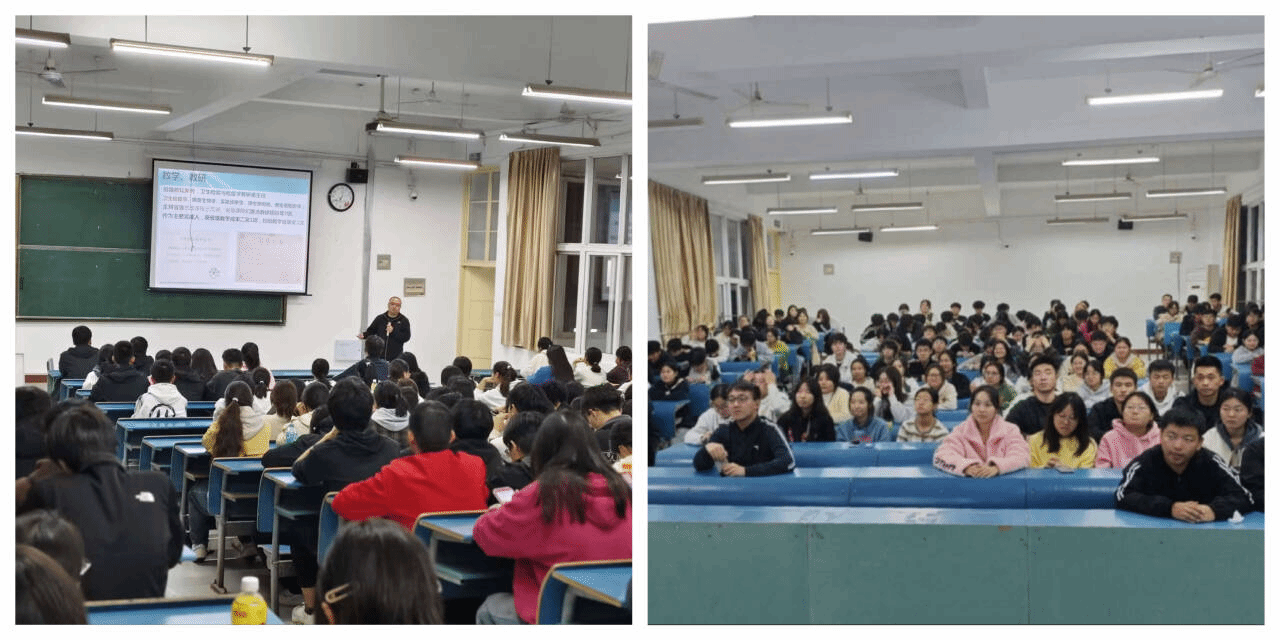 孙恩涛以“珍惜大学生活,开拓新的境界”为主题授课。他分享了在构建和带领高效科研团队方面的经验和心得,列举了团队成员的优秀事例。从前沿的研究成果到正在进行的科研项目,生动形象地向同学们展示了医检和卫检专业科研的魅力与广阔前景。他详细解读了专业的课程设置,将看似复杂的课程体系拆解成一个个清晰的模块,让同学们明白每一门课程在整个专业学习中的地位和作用。同时,还分享了各种实用的学习方法,无论是理论知识的积累还是实践技能的提升,都给出了针对性的建议。而对于同学们最为关心的就业去向问题,孙恩涛对当前检验行业的现状进行了详细剖析,包括市场需求、就业岗位分布以及不同领域对检验人才的特殊要求等,他指出随着科技的不断进步,检验行业将朝着更加智能化、精准化的方向发展,这意味着同学们需要不断提升自己的综合素质,以适应行业的变化。最后,孙恩涛与学生们进行互动,学生积极踊跃提出问题,孙恩涛教授为其详细一一解答。现场掌声不断,气氛和谐融洽。