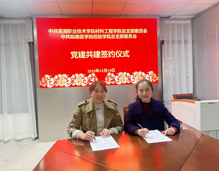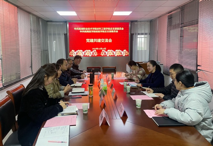 潘莉介绍了芜湖职业技术学院材料工程学院的基本情况和学院党建工作品牌,表示开展党建共建活动,学院之间、支部之间实现优势互补,有利于促进双方党建和事业发展携手共进。靳维维分享了“样板党支部”的建设经验。冯光峰希望以共建为契机,推动双方在人才培养和教师队伍建设方面取得共同进步。