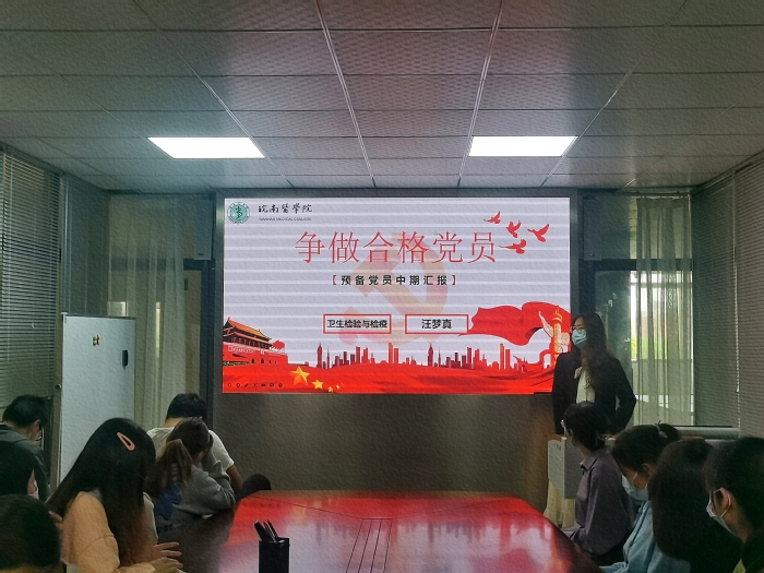 会上,支部书记陶善珺带领与会同志学习了《beat365正版唯一官方网站党总支学生党支部预备党员中期考核制度》,介绍16名预备党员半年来的教育培养情况。随后,16名预备党员分别从政治素质、理论学习、作用发挥等方面,详细阐述自己在考察期间的学习、生活情况,并深入剖析自己的不足与改进之处。在半年的考察培养中,他们认真参加党史学习教育,学习党的理论,按时交纳党费,积极参加党支部活动,有效开展“一对一”帮扶活动。尤其在疫情防控期间,他们能带头遵守校园防疫规定,参与数次志愿服务,起到了很好的带头模范作用。