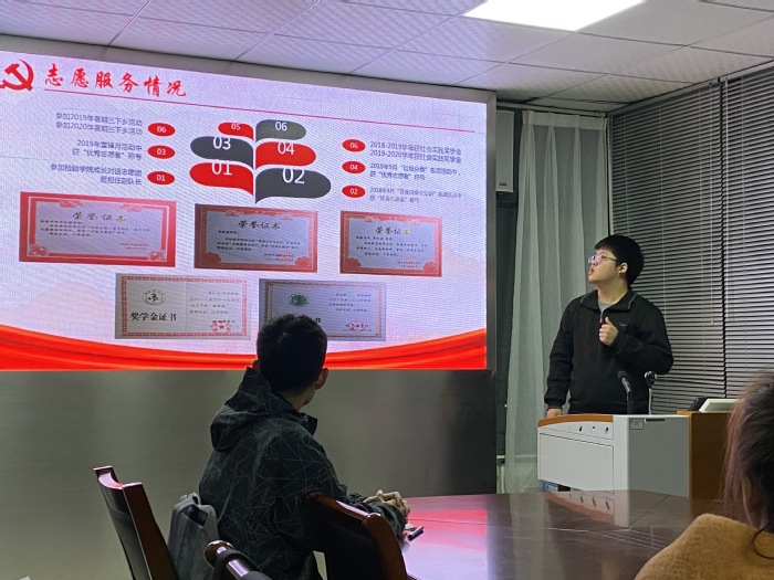 按照《中国共产党发展党员工作细则》的要求,为努力建设一支信念坚定、素质优良、规模适度、结构合理、纪律严明、作用突出的党员队伍,11月22号下午,beat365正版唯一官方网站党总支学生党支部在党员活动室召开了2020年下半年发展对象差额推荐汇报会,学生党支部纪检委员曹玉祥主持会议,党总支副书记崔晓霞,学生党支部组织、宣传委员张秦,学生党员和学生群众代表参加了此次会议。