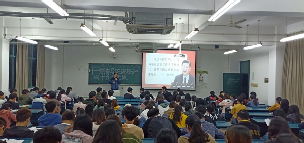 10月27日晚,beat365正版唯一官方网站开展“不忘初心 牢记使命”主题教育党课活动,邀请马克思主义学院刘振宏副教授在1号教学楼102教室为学生讲授题为《学习贯彻习近平新时代中国特色社会主义思想》的讲座。beat365正版唯一官方网站党委副书记、副院长崔晓霞,党务秘书邵峰、学生党支部书记陶善珺、学院团委副书记曹玉祥及青马班学生、十九大学习小组成员、入党积极分子和发展对象参加学习。