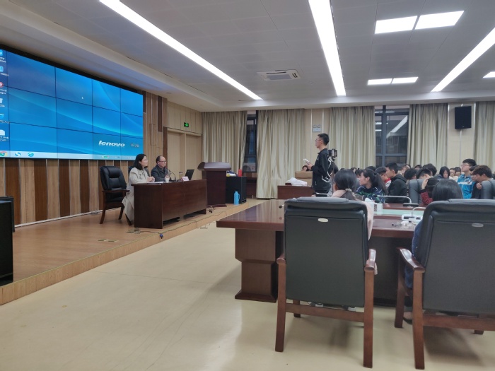 在现场提问环节,同学们踊跃发言、积极提问。陶庭马对同学们的问题耐心解答使同学们更加深入了解社会主义核心价值观的内涵。