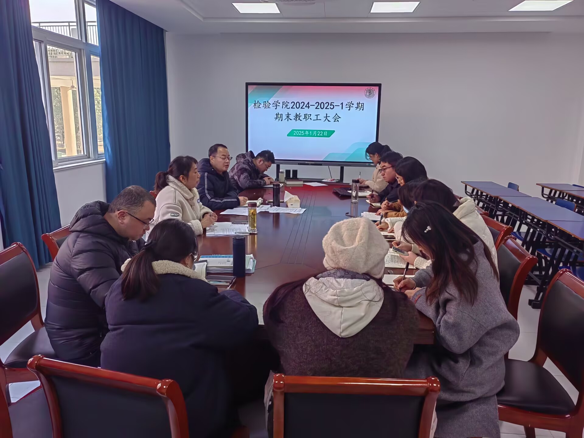 为回顾与展望学院发展,确保寒假期间校园安全稳定,1月22日上午,beat365正版唯一官方网站召开期末全体教职工会议暨安全大检查会议,会议由学院党委书记刘影主持,全体教职工参加。