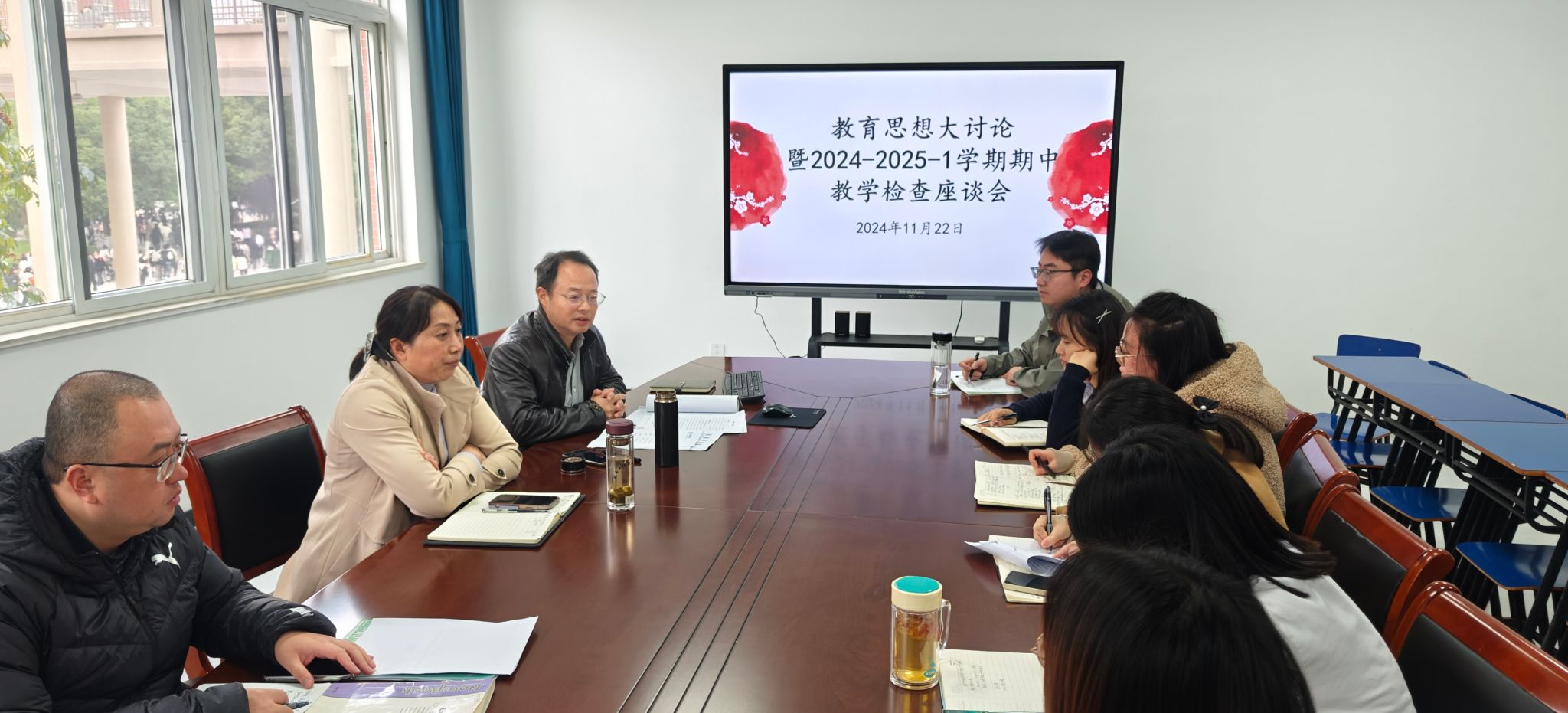 为进一步深入教育思想大讨论,beat365正版唯一官方网站以本学期的期中教学检查为契机,于11月22日下午在学院会议室召开教育思想大讨论暨学期期中教学检查座谈会。学院党委书记刘影,院长洪亮和全体教职工参会,会议由洪亮主持。