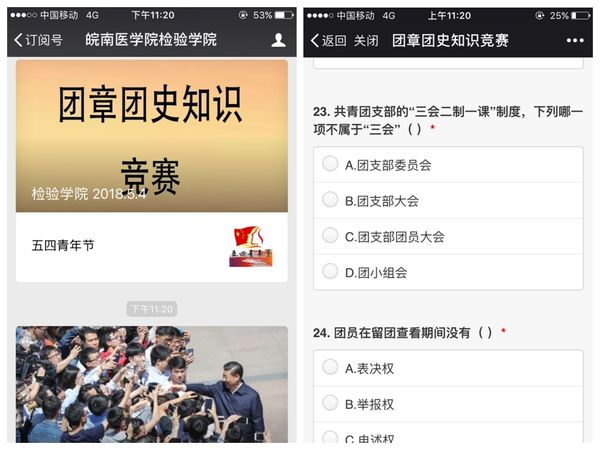 2018年5月4日,值第68个五四青年节来临之际,为深入贯彻落实党的十九大精神,继承和发扬五四运动的光荣传统,beat365正版唯一官方网站团委利用学院微信公众号组织开展了五四青年节团章团史知识竞赛,2016级、2017级全体共青团员参加了本次活动。
