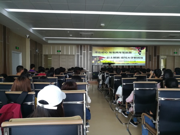 为进一步推动学院征兵工作,牢固树立参军报国意识,引导广大学子积极投身绿色军营,5月24日上午9点,beat365正版唯一官方网站在4号实验楼二楼报告厅举行“不忘初心,匆匆两年军旅路;壮士解腕,续写大学新辉煌”专题宣讲,主讲人为2016级医学检验技术2班退伍大学生王炎康同学,学院2016级、2017级全体学生到场聆听,宣讲会由辅导员都芳主持。