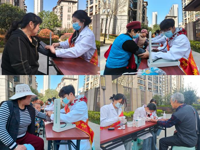 健康护航,义诊传递温暖关怀。活动伊始,现场便热闹非凡,志愿者们热情有序地为社区居民开展血压、血糖测量工作。在操作过程中,他们动作轻柔规范,细心询问居民的日常饮食和作息习惯,根据测量结果为居民提供个性化的健康建议,特别叮嘱患有慢性病的老人遵医嘱按时服药、定期复查。贴心的服务让居民们感受到浓浓的关怀,大家纷纷对志愿者们的工作表示赞赏与感谢。