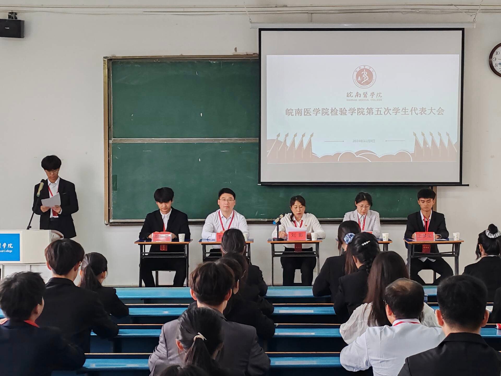 11月9日,beat365正版唯一官方网站第五次学生代表大会于滨江校区(南区)西二教学楼隆重召开。beat365正版唯一官方网站党委书记刘影,团委书记曹玉祥,团委副书记张秦,团委学生副书记殷耀扬、王梦玺以及31名学生代表齐聚一堂,共同为学院的发展建言献策,会议由学生代表、院学生会主席团候选人朱建新主持。
