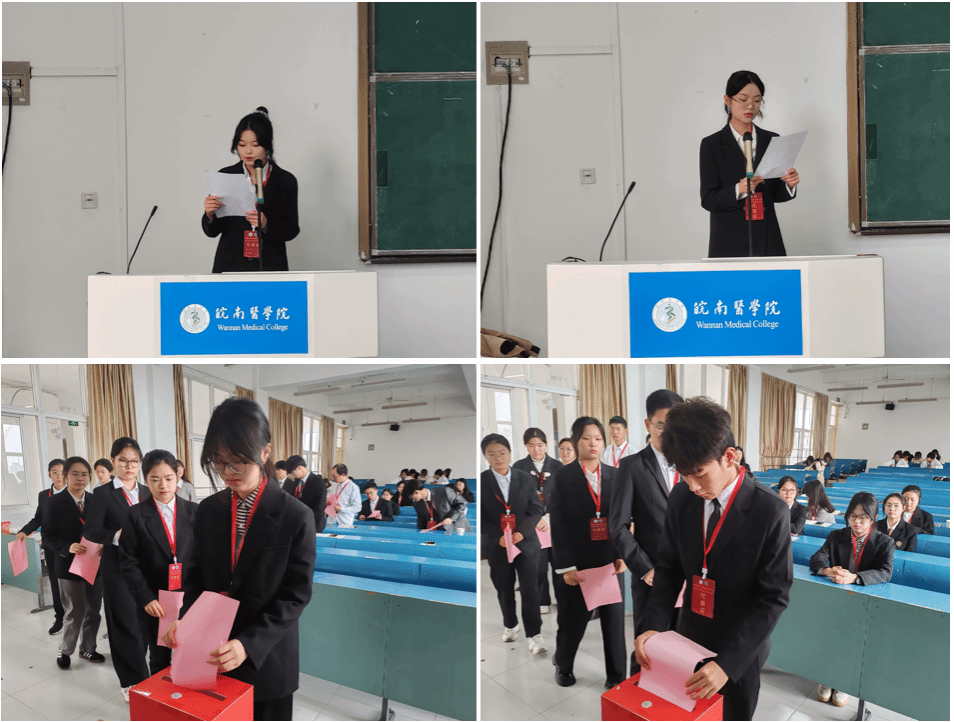 学生代表、院学生会主席团成员候选人赵婉莹宣读了《皖南医学院beat365正版唯一官方网站第五次学生代表大会选举办法》,明确了选举规则。经大会选举,产生了院第五届学生会主席团成员3人、校第十七次学生代表大会代表8人。