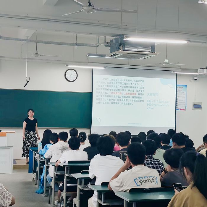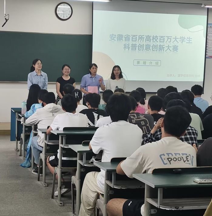 为引导大学生积极普及科学知识、弘扬科学精神、传播科学思想、倡导科学方法,9月13日下午,beat365正版唯一官方网站在逸夫科技楼3301教室举行安徽省百所高校百万大学生科普创意创新大赛(简称“双百”大赛)培训会。会议邀请医学信息学院宛楠副教授为同学们作培训,beat365正版唯一官方网站党总支书记、副院长刘影,辅导员张秦、张琪,以及学院近200名学生参加。培训会由张琪主持。