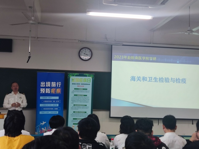 宣讲会上,祝高峰讲解了出入境预防相关知识,并对学生感兴趣的话题进行了交流。先裕飞生动有趣地介绍了海关卫生检疫相关工作,阐述了大学生活的意义以及获取学习的方法。两位报告人激励同学们不断前行,为祖国的卫生检疫事业作出自己的贡献。