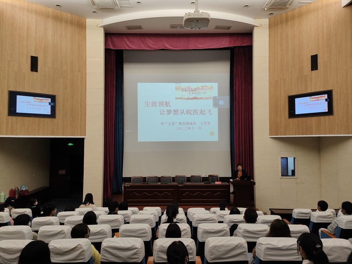 为帮助新生更好地适应大学生活,树立好人生目标,度过美好而充实的大学生活,11月3日,beat365正版唯一官方网站众禾学堂联合校关工委“五老”报告团成员王雪琴在逸夫科技楼一楼报告厅作“生涯领航——让梦想从皖医起飞”讲座。讲座采取线上、线下相结合的方式进行,beat365正版唯一官方网站党总支书记崔晓霞,2022级辅导员张琪及部分新生现场参会,会议由学院关工委秘书陶善珺主持。