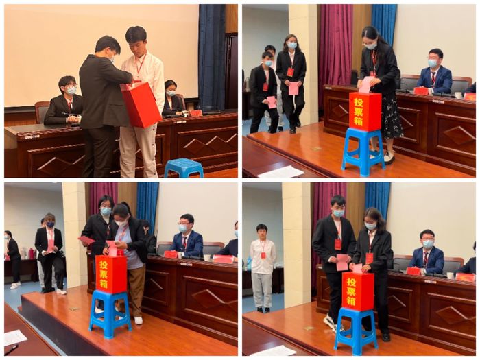 会议在雄壮激昂的《光荣啊,中国共青团》中圆满结束。会后,学代表在四号实验楼三楼学院会议室就学生的在校生活、学习等召开学代表讨论会。