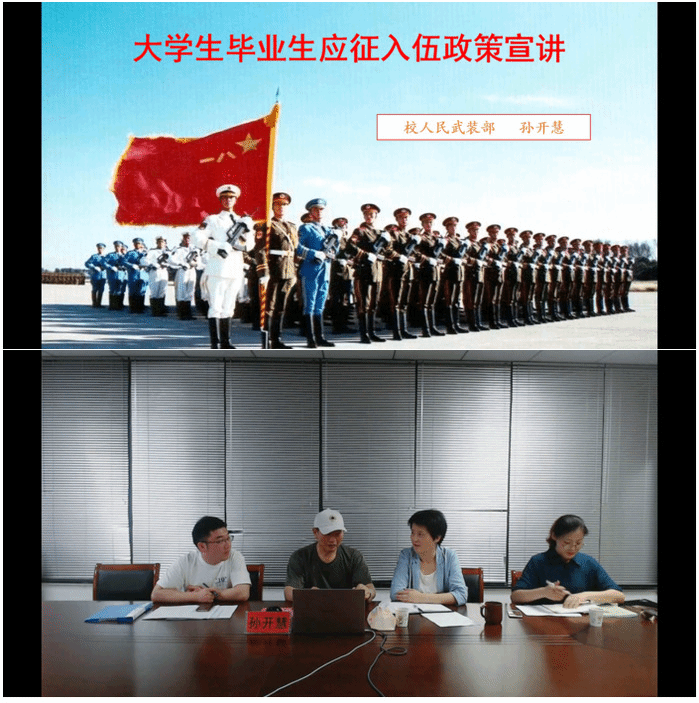 为贯彻落实国家征兵政策,激发更多优秀检验学子参军入伍热情,6月1日下午,beat365正版唯一官方网站于四号实验楼三楼会议室开展了毕业生应征入伍政策宣讲会。学生处国防教育科科长孙开慧、临床医学院2021届退伍毕业生王汉全应邀主讲,beat365正版唯一官方网站党总支书记崔晓霞、学院辅导员张秦、陶善珺出席会议,beat365正版唯一官方网站全体适龄男青年学生参会,宣讲会由毕业班辅导员曹玉祥主持。