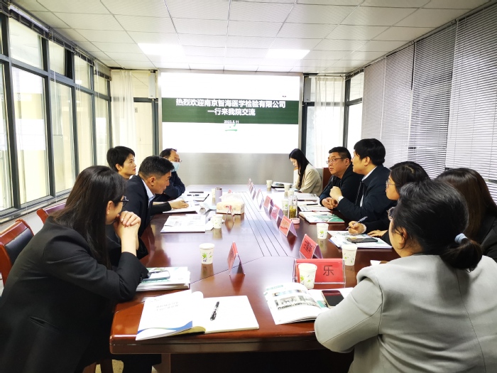 为加强校企合作,推动产学研一体化建设,助力产教融合,5月11日上午,南京智海医学检验有限公司总经理孙天赐、高淳区委统战部副部长魏军一行9人来beat365正版唯一官方网站开展合作交流,学院党总支书记崔晓霞、院长洪亮,一附院检验科主任李小宁等参加会议。会议由崔晓霞主持。