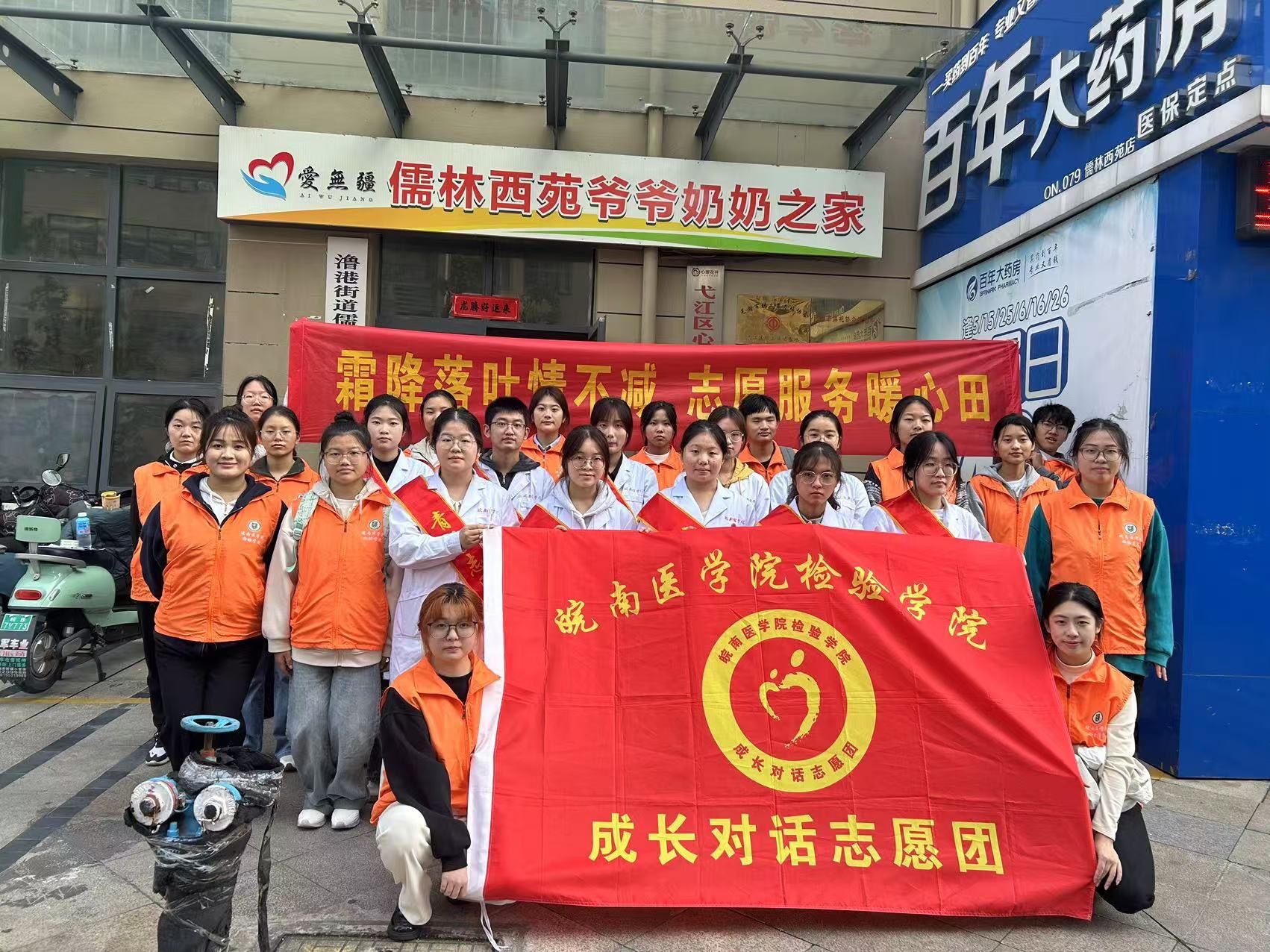 秋已暮,冬将至。为保障居民健康,增强个人防护意识,beat365正版唯一官方网站“成长对话”志愿团于11月2日赴儒林西苑开展霜降落叶情不减,志愿服务暖心田”为主题的志愿服务活动,普及健康预防知识。