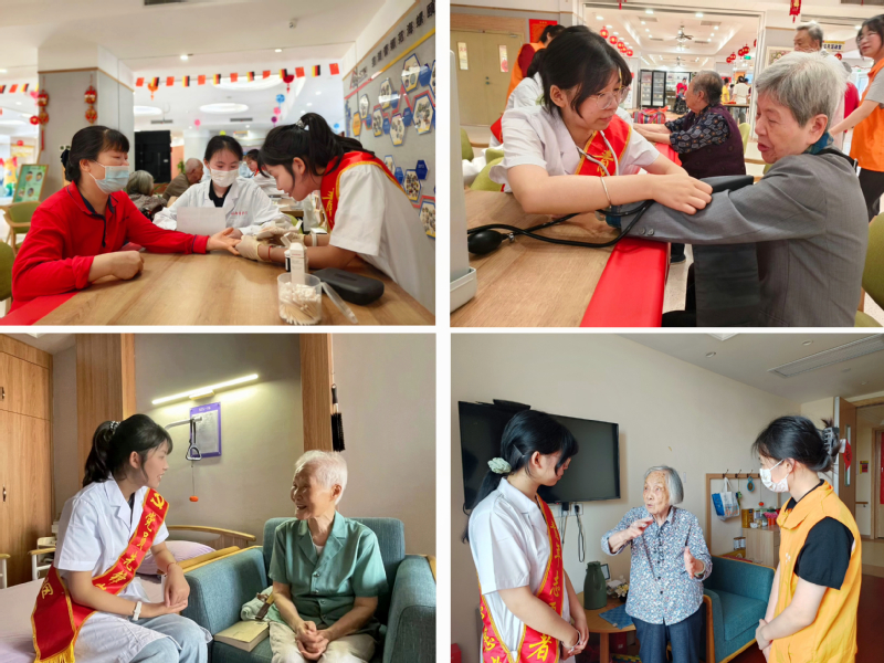 作为医学生,团队成员为老人们提供了血糖检测和血压检测志愿服务,并耐心地解答问题,根据每位老人的健康史和饮食习惯提供一些日常健康知识和自我保健方法。同时,与爷爷奶奶进行“近距离”接触,聆听老一辈的故事经历,回忆当年的艰苦岁月,并为他们送上节日祝福。