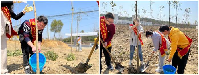 在植树现场,师生党员们三人一组分工协作,扶苗、铲土、踩实、浇水,各道工序都一丝不苟,整个植树现场一片热火朝天的景象。在大家的共同配合下,一排排女贞树苗盎然挺立,为原本光秃秃的荒地披上了一片新绿。党员们纷纷表示:此次义务植树主题党日活动真的非常有意义,既强化了自身履职尽责的意识,又传递了绿色正能量,让绿色环保的理念更加深入人心。今后将进一步发挥好共产党员的先锋模范作用,以实际行动倡导植绿、护绿、爱绿的良好风尚,践行“绿水青山就是金山银山”理念。