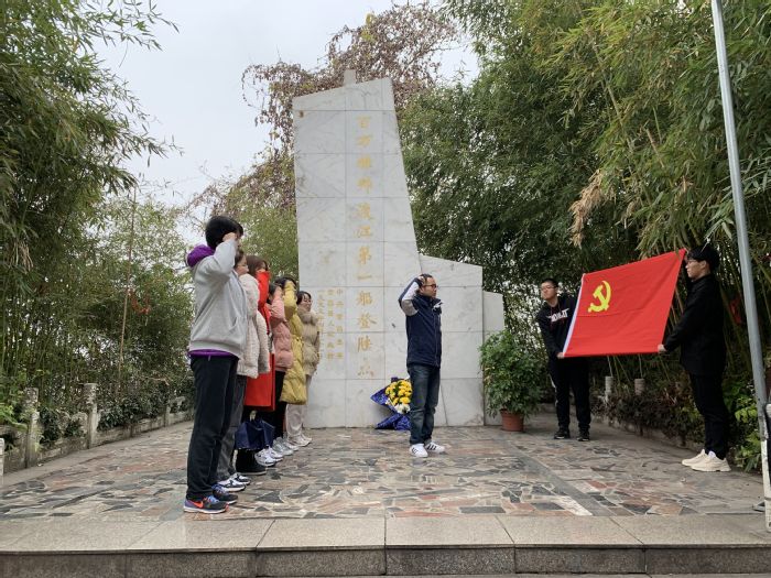 在百万雄师第一船登陆点,全体党员缅怀革命先烈,面对党旗,重温入党誓词,深切表达了对革命烈士的崇敬之情。