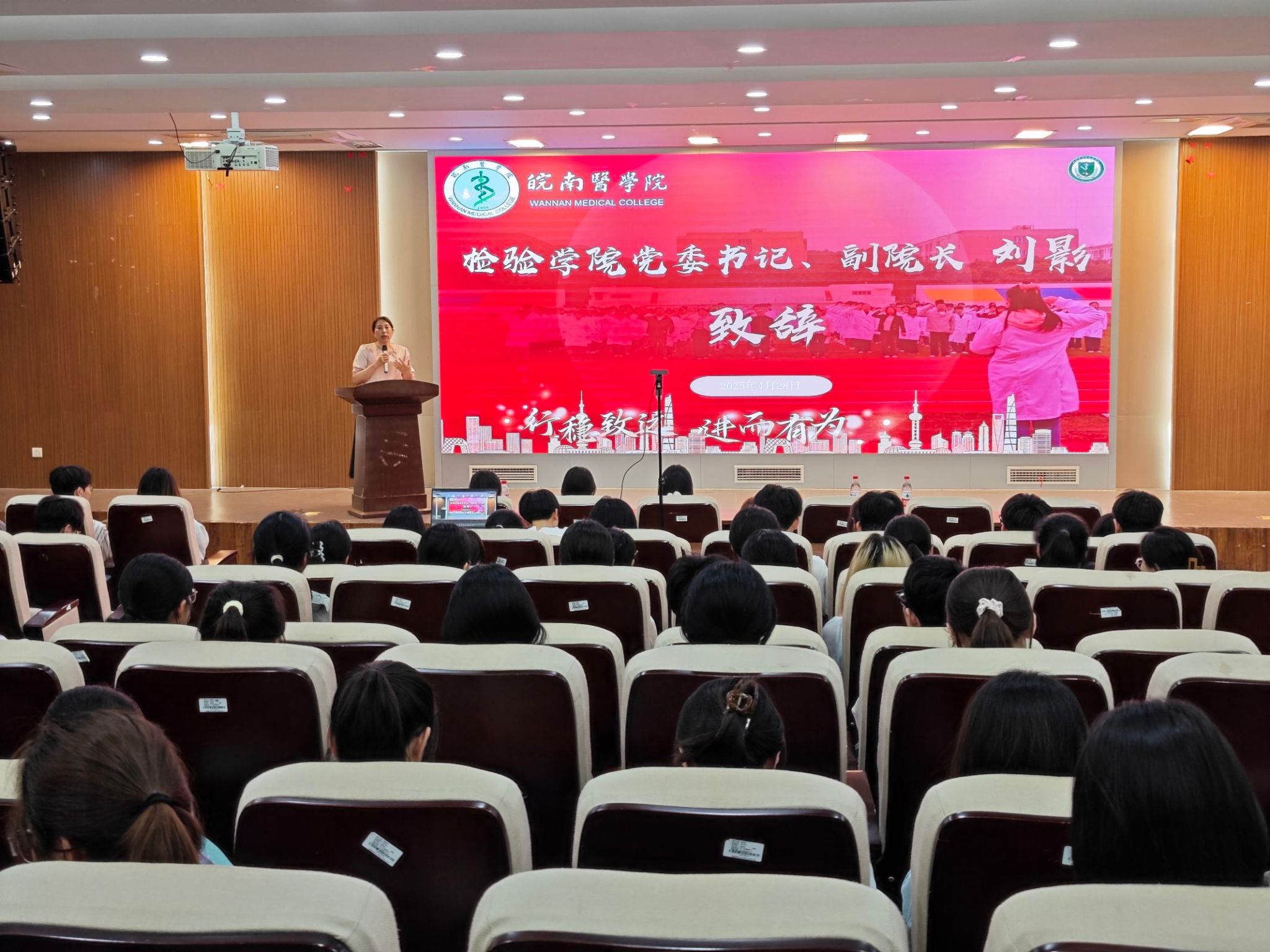 刘影在致辞中以详实的数据深入剖析了学院今年考研情况,展望未来考研发展趋势,字里行间满是对学子们的殷切期盼。她代表学院全体教师表达了对同学们的深切关怀,着重强调考研初试、调剂、机遇把握及就业抉择等关键事宜,为2022级即将实习的同学们勾勒出考研征程的整体轮廓和未来前景,希望同学们认真聆听、早做打算。