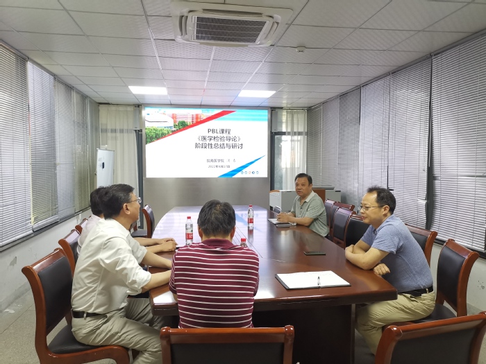为加快推进教学改革,进一步完善PBL课程,推动PBL教学走深走实,6月17日下午,beat365正版唯一官方网站召开《医学检验导论》PBL教学总结与研讨会,院长洪亮出席会议,课程负责人武其文、吴竞、张鹏等参加会议,会议由副院长浦春主持。