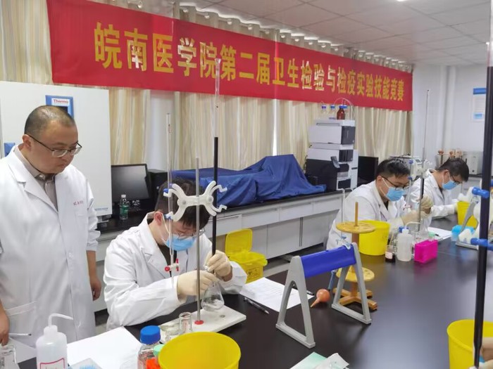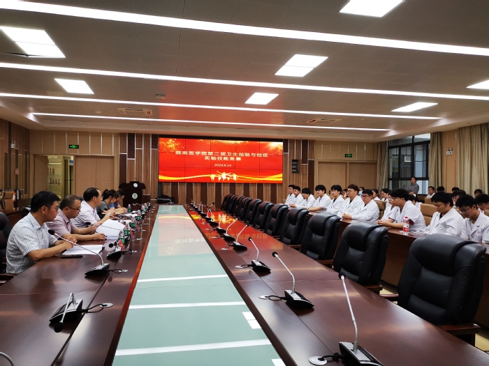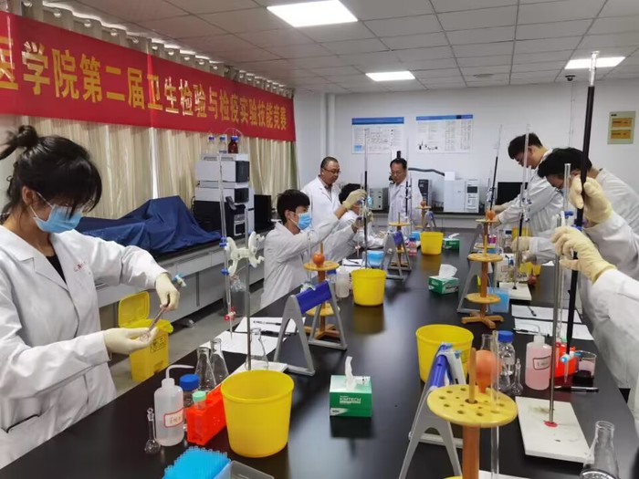 为进一步加强学生实践动手能力培养,检验学生实践技术知识学习效果,6月14日,beat365正版唯一官方网站在四号实验楼举办第二届卫生检验与检疫实验技能竞赛。2020级卫生检验与检疫专业全体学生参加竞赛,学院本部专任教师担任评委,卫生检验与检疫学教研室主任孙恩涛主持开幕式。