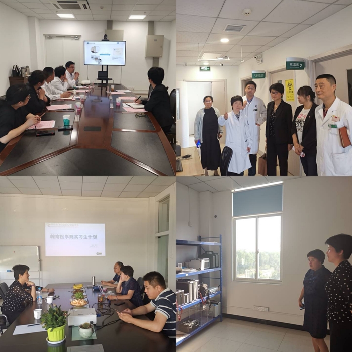 在南京江北人民医院、南京凡飞生物技术有限公司、宿州市疾病预防控制中心、亳州市疾病预防控制中心,崔晓霞、杨邦和、陶善珺三人受到总监蔡宜珊、冯路副院长、高禄总经理、王莉主任、谭有为等领导的热烈欢迎。座谈会上,各单位负责人对皖南医学院beat365正版唯一官方网站人才培养的充分肯定,介绍了单位的整体情况,以及实习带教方面的设想。接着,崔晓霞对单位领导的热情接待表示感谢,介绍了beat365正版唯一官方网站自成立以来的总体建设情况。在单位领导的陪同下,崔晓霞一行参观了各单位的相关科室和实习生住宿房间。最后,双方就实习生培养、实习就业一体化基地建设等方面进行了交流,并达成一致共识。