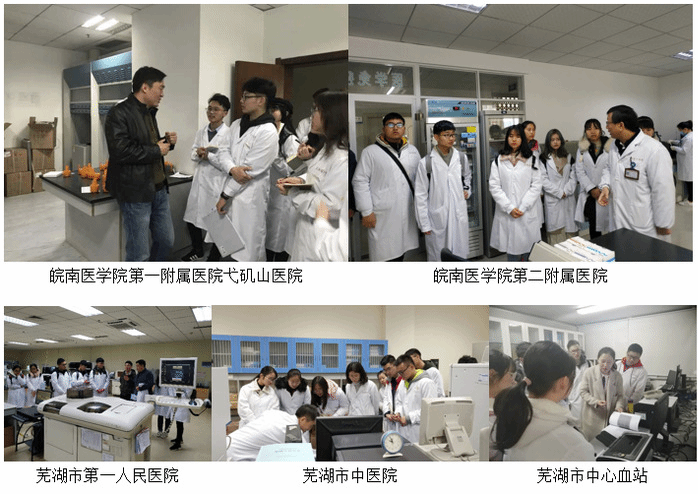 在皖南医学院第一附属医院弋矶山医院、第二附属医院、芜湖市第一人民医院、芜湖市中医院、芜湖市中心血站,在检验科负责老师的介绍下,54名医学检验技术专业学生了解了检验科的工作环境、工作流程以及检验仪器的使用方法、操作规程及注意事项。芜湖市第一人民医院检验科崔凡主任,以“如何成为一个合格的检验人”为题,传授了在校期间如何合理安排专业学习和课外活动,为将来进入工作岗位更好的适应工作和发展需要打下基础,使同学们受益匪浅。