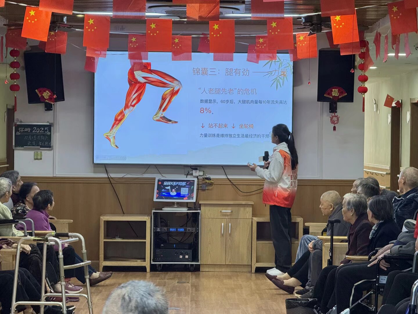 11月1日,皖南医学院“医”心“益”意志愿服务队走进芜湖市弋江区丰华养老中心,开展以“科学运动焕活力”为主题的健康宣讲志愿服务活动。本次活动旨在普及科学运动知识,提升老年人身体素质与健康意识,通过“热身互动+主题宣讲+趣味游戏”三位一体的创新形式,为老年人带来一场寓教于乐、生动有趣的健康体验。