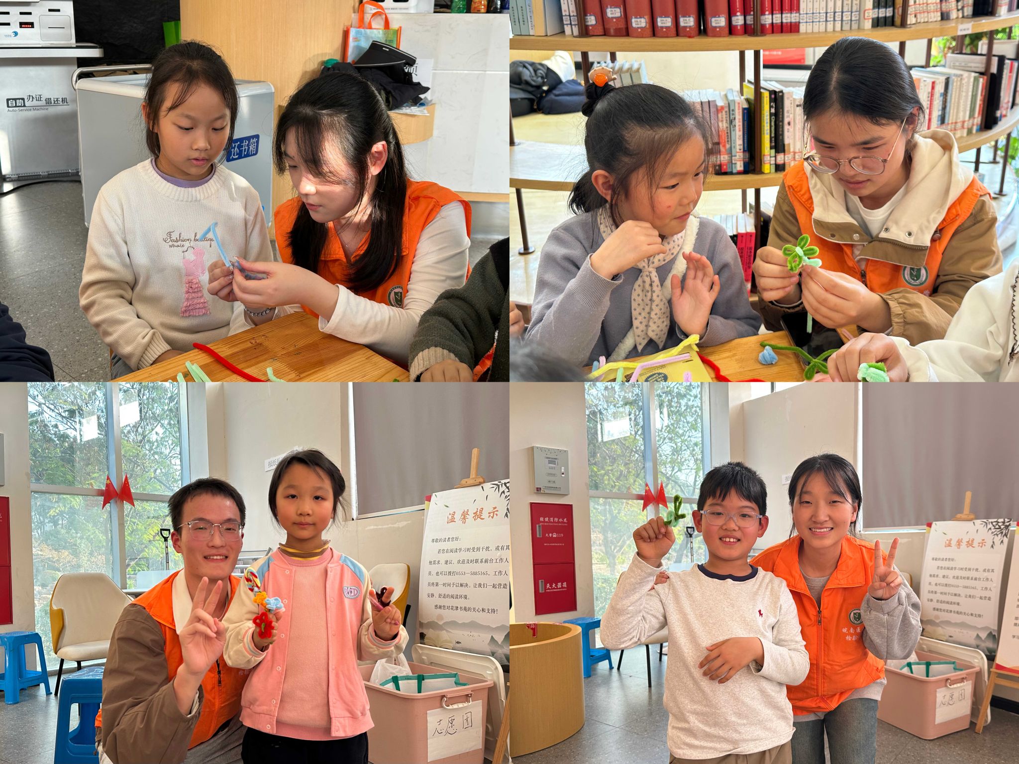为丰富社区儿童的课余文化生活,激发孩子们的想象力与创造力,11月16日,beat365正版唯一官方网站成长对话志愿团走进花津书苑,开展“双双巧手筑美好,缕缕书香润童心”主题志愿活动。以科普小课堂、“花样扭扭棒”和互动小游戏为载体,让小朋友们在暖冬里感受科学的乐趣,锻炼动手能力,度过充实有意义的快乐时光。