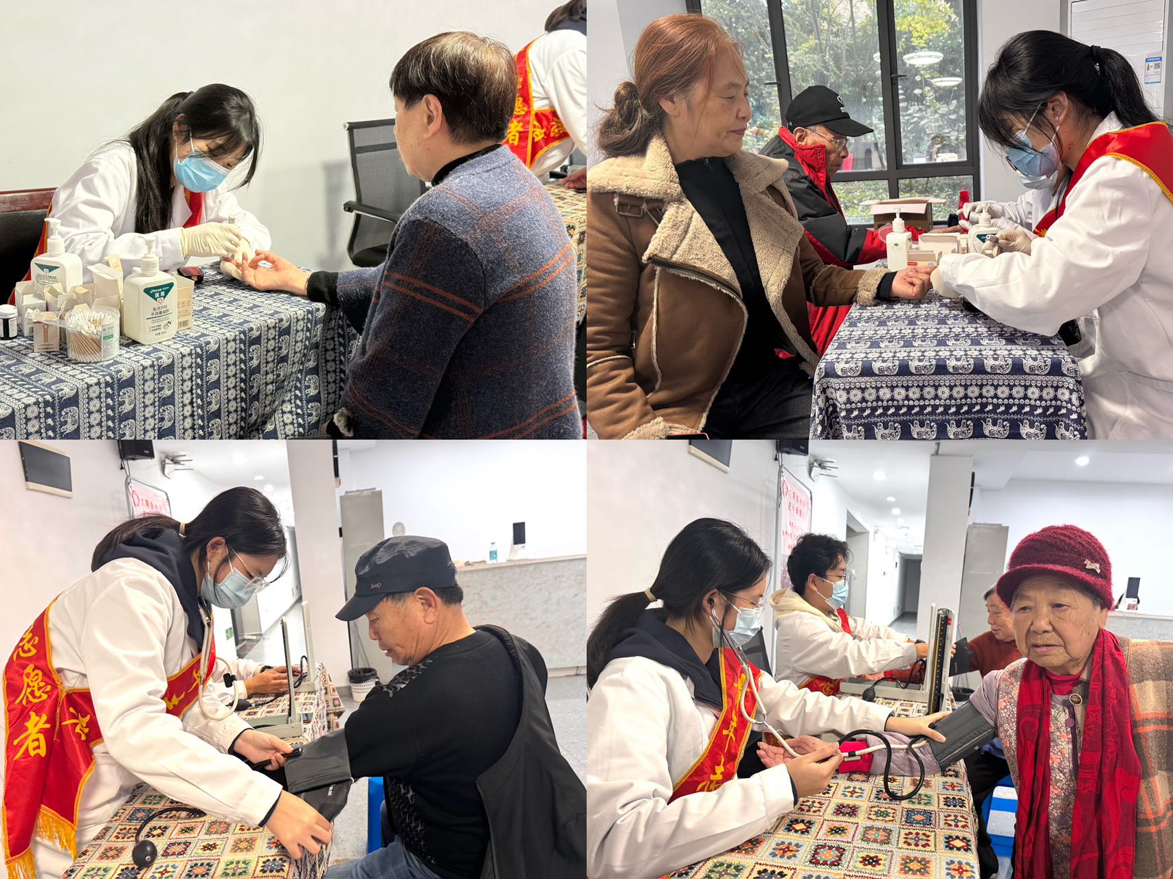 医疗守护健康,服务传递温情。活动伊始,志愿者们迅速布置好医疗服务区域,为居民提供免费的血压和血糖检测。他们结合测量结果与老人的日常生活习惯,给予了个性化的健康建议,并贴心叮嘱合理膳食与科学运动。志愿者们专业周到的服务,成为了冬日里一道温暖的风景线,赢得了社区居民的连连称赞。