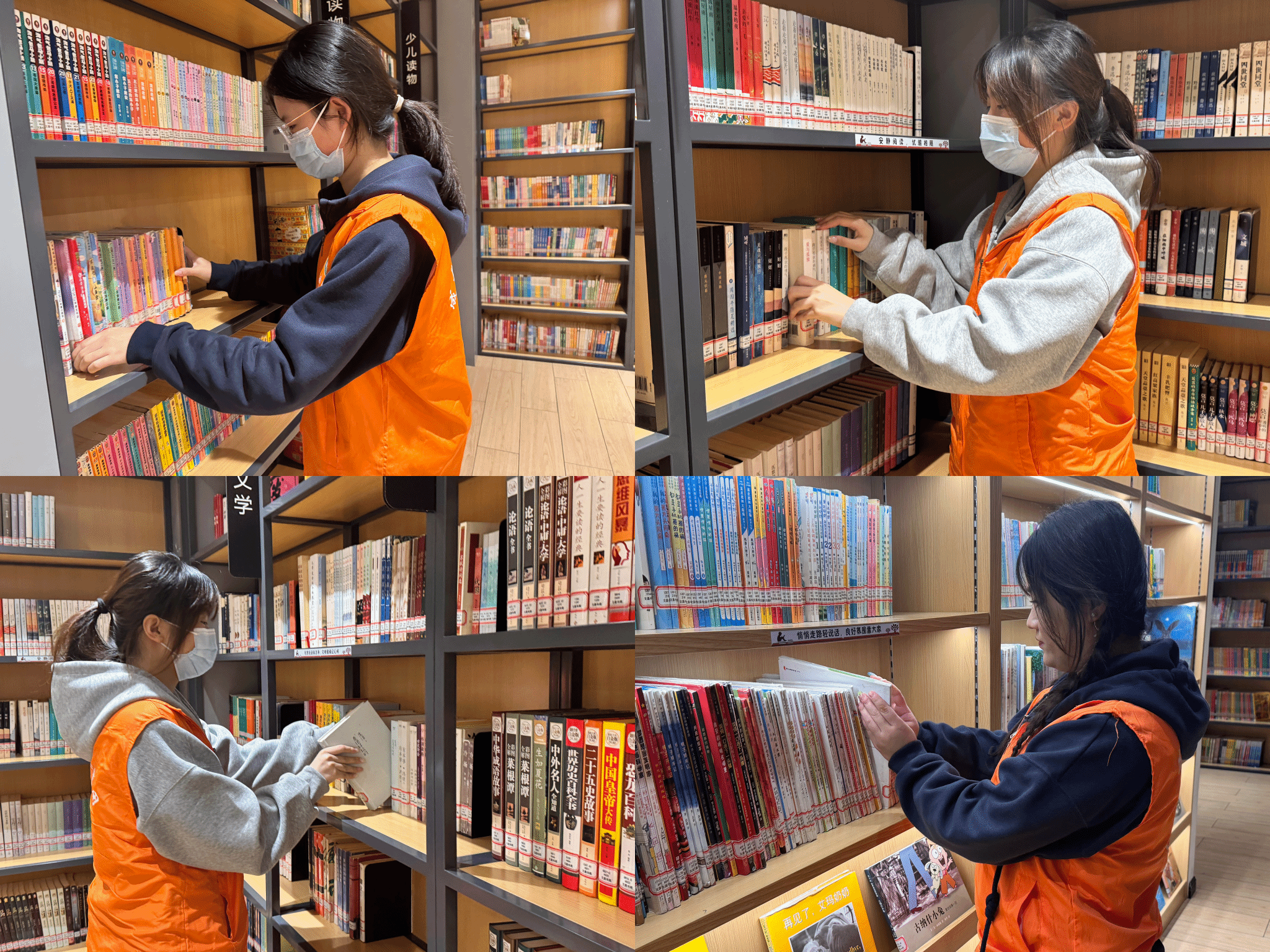 书香润心,志愿传情。活动伊始,志愿者们与文昌书苑的工作人员一同整理书籍,将散落的图书按类别、作者细心归位。在整理过程中,志愿者们还为小朋友们推荐了诸多适合阅读的绘本与科普读物,用耐心的讲解激发他们的阅读兴趣。整洁的书架、有序的图书,不仅为书院营造了舒适的阅读环境,更在潜移默化中培养了小朋友们爱护书籍、热爱阅读的好习惯。