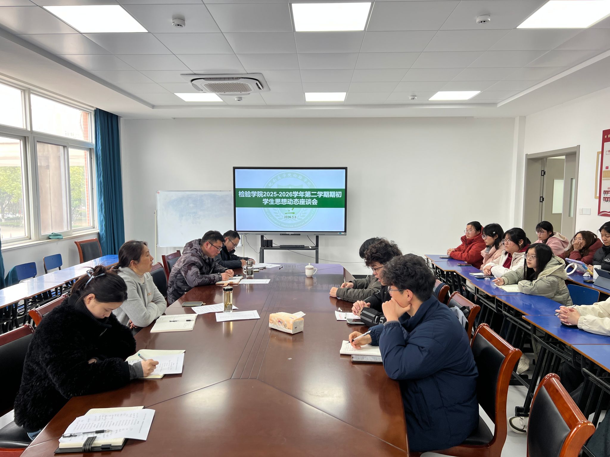 座谈会上,学生代表围绕学业发展、校园生活、心理健康等方面踊跃发言。学业规划成为焦点,大三学生普遍对考研择校、专业选择感到迷茫,希望获得系统复习指导、真题解析及学长学姐经验分享;低年级学生则建议建立课程与职业考试的对应关系,明确学习重点。寒假社会实践分享中,同学们积极参与社区服务、医院导诊等志愿活动,通过实践增强了解决问题的能力。同时,对南区图书馆受运动噪音干扰、食堂二楼开放不足、需增设专用背诵教室、教学楼饮水机增加常温水等提出了具体的意见建议。