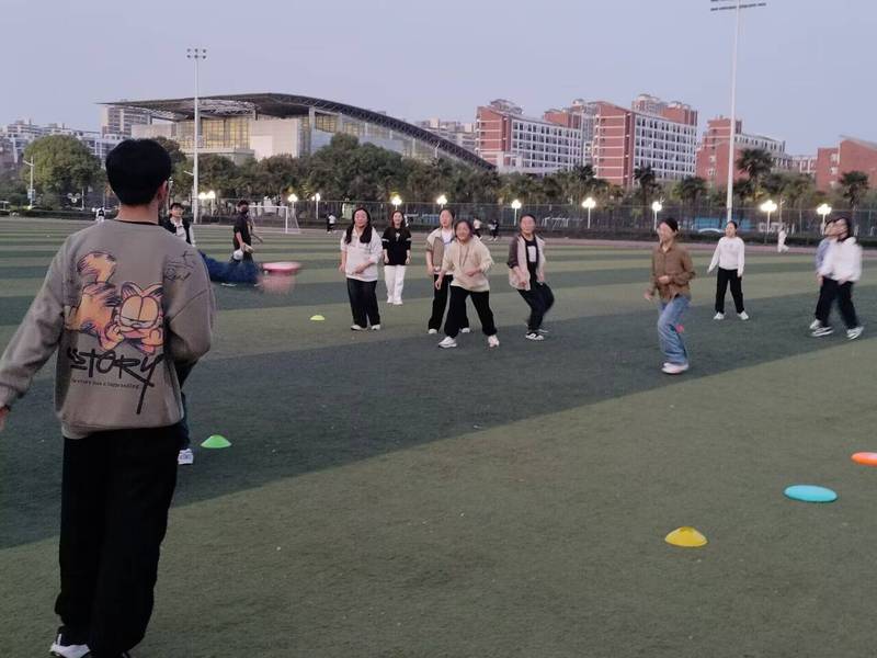 在细致耐心的教学之后,同学们跃跃欲试,除了起巩固基础作用的飞盘的接和抛之外,还有激情的躲避飞盘。在飞盘娱乐局中,大家挥洒汗水,展现青春活力。虽然他们在动作上稍显不足,但社团里的同学们乐于指导,在场每一名参与者都感受到了飞盘运动带来的无限乐趣,在一抛一接中体会掌控的魅力之所在。时间仿若细沙,从手心捞起,从指尖流过。大家交流这次活动的心得时,纷纷表示参与校园飞盘活动,感受运动的快乐。