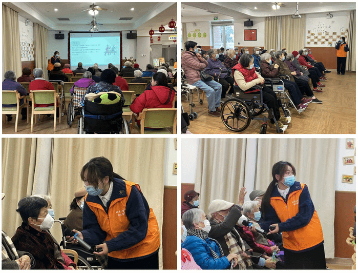 养生科普守健康。近期流感病毒盛行,老年人的健康需要社会的关注。beat365正版唯一官方网站志愿者们在颐养院大厅开展了流感知识的宣讲,从流感的传播途径、预防与治疗以及冬季养生知识等三个方面进行讲解,旨在提高老年人的健康意识和对预防流感的重视程度。宣讲过程中,志愿者们带领大家学习七步专业洗手法,老人们积极踊跃地与学生互动,分享日常生活小妙招,整个大厅气氛热烈又活跃。