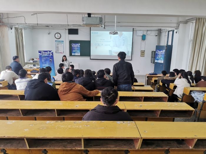 下午,南京迪安医学检验所有限公司在赭麓校区4402教室举办专场招聘会,beat365正版唯一官方网站38名毕业生参加。黄婷通过PPT和视频宣讲的形式,从集团发展战略、人才发展、福利待遇、江苏迪安发展四个方面分别作了介绍,并现场解答同学们的提问。