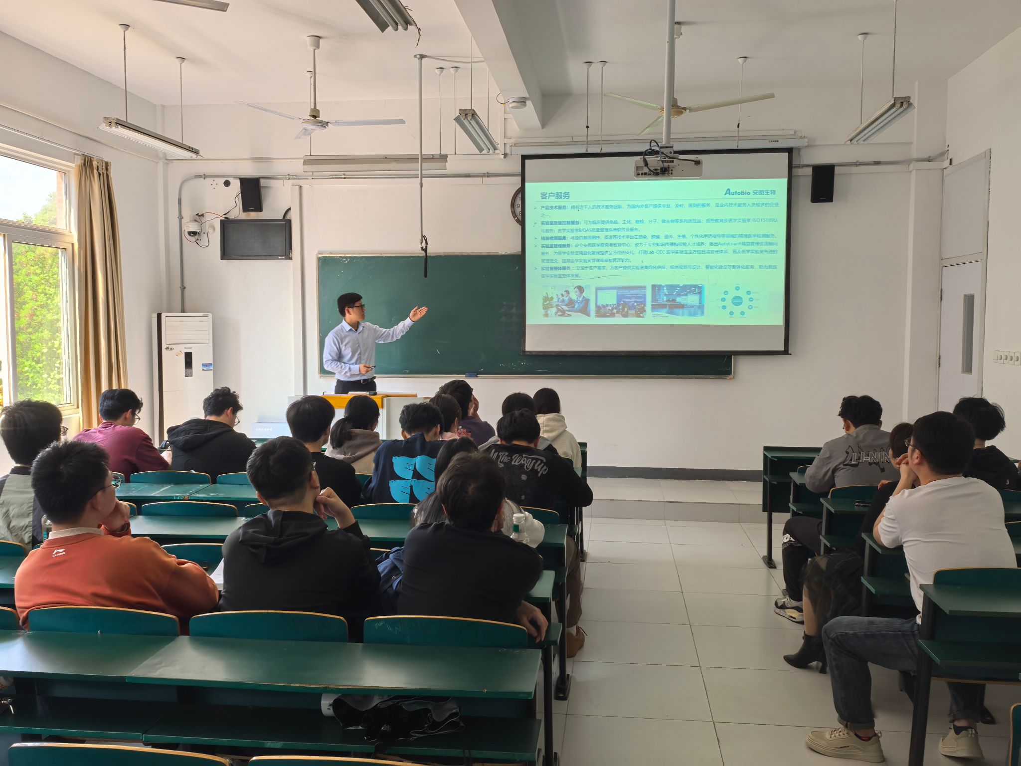 熊子超在西三教3205教室就郑州安图生物工程有限公司的发展历程、产品简介、薪资待遇、员工培养、岗位条件等方面进行了详细宣讲,给同学们分析了就业市场对检验相关专业人才的需求。现场共有30余名毕业生参加招聘,线上线下共投递简历10余份。