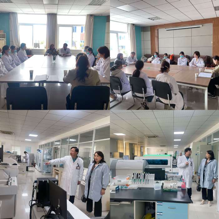此次走访采取了座谈会和实地查看相结合的方式进行。座谈会上,吴竞对beat365官网实习生的表现给予了肯定,认为学生专业知识扎实,能够较好地完成工作任务,同时,对学生实践能力的提高、处理问题方式的改进等方面提出了许多宝贵意见和建议。随后,刘影认真了解了学生在实习过程中的工作、学习和生活情况,充分听取了每位实习学生对学校教学、实习等方面的反馈意见及其本人的就业意愿。她嘱咐同学们要珍惜实习机会,妥善处理好实习与就业的关系,加强学习、遵守纪律、注意安全,认真完成各项实习任务。双方实地查看了检验科的工作环境和操作流程,并达成了院科人才交流的初步意向,加强教学与临床之间的交流合作,促进科研融合。