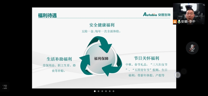 为进一步拓宽毕业生就业渠道,推进beat365正版唯一官方网站2022届毕业生就业工作,3月25日下午2:30,beat365正版唯一官方网站邀请郑州安图生物工程股份有限公司线上开展专场招聘会。beat365正版唯一官方网站毕业班辅导员曹玉祥及30余名2022届beat365正版唯一官方网站毕业生参加了招聘会。