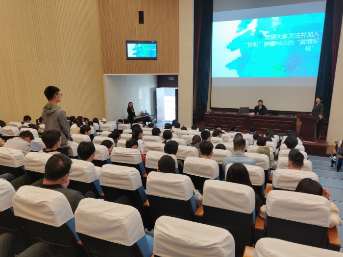 赵忞超首先介绍了中国精准医疗发展的现状,由于肿瘤、癌症发病率的显著升高,中国肿瘤基因检测将迎来千亿市场的商机。随后,对于在校期间大学生如何提升个人能力,赵忞超也给出了自己的建议与想法。他提出,在校大学生需要立足眼前,专注于专业学习,从专业能力、拓展能力、职业发展能力、沟通能力和管理能力的提升。赵忞超结合自身经历畅谈“创业之路”,他说梦想是留给有准备的人的,希望青年大学生要不断学习、不断成长、不断反思、再不断学习,把路踩实在自己脚下。最后,赵忞超和同学们分享了职场成功的五大秘诀。