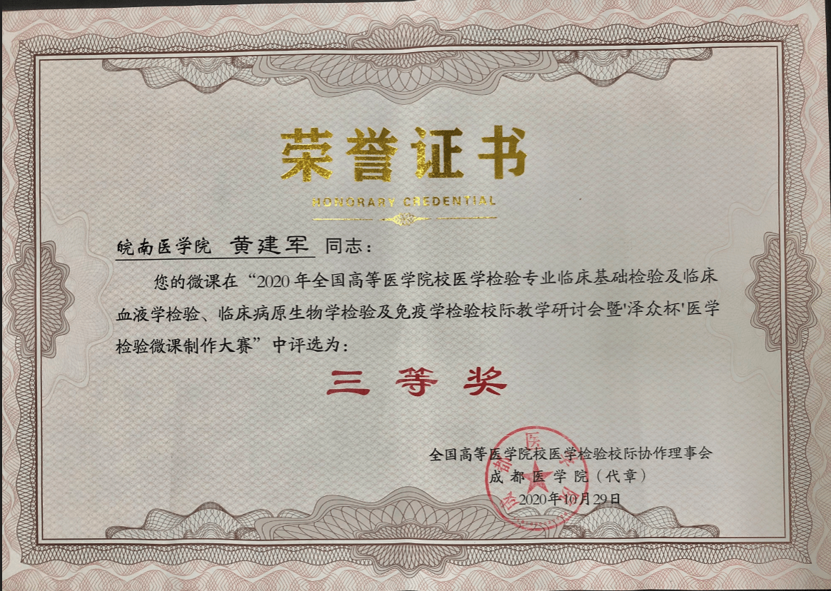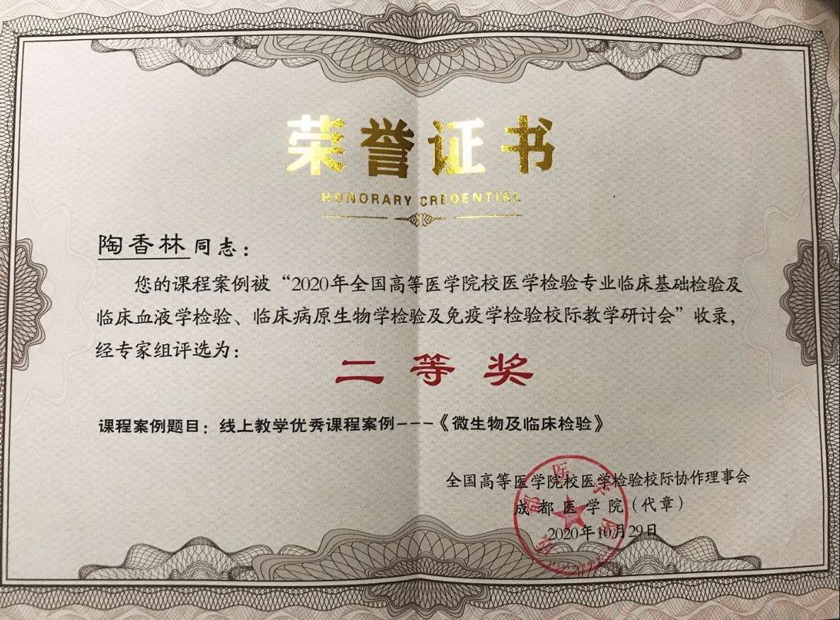 来自全国六十多所高校200余名代表参会,会议前半部分为数十名全国医学检验界知名专家就国内当前疫情防控下新时代、新医科背景下检验医学学科建设与教育改革、课程思政建设以及线上资源开发和利用等方面的热点、焦点问题分享了宝贵的经验和思考。会议后半部分为线上优秀课程和微课制作竞赛,分别有来自全国40多个医学院校的100多个作品参加了比赛,经过线上评选和专家评委会的现场评比,我校选送的三个作品均取得了优异的成绩。陶香林老师的线上教学优秀课程案例《微生物及临床检验》获竞赛二等奖临床微生物与免疫学教研室李婕、黄建军老师,选送的作品《临床隐球菌检验》和《II型超敏反应的机制与检验》分别获得微课制作大赛二等奖和三等奖。本次全国校际研讨会,通过参会单位投票选举,我校还成功入选全国高等医学院校医学检验专业校际协作会临床病原生物学检验及免疫学检验专业学组常务理事单位。