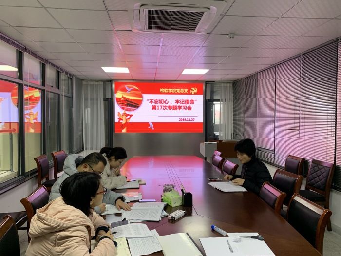 为认真贯彻落实“不忘初心、牢记使命”主题教育工作要求,引导全体教师树牢“四个意识”、坚定“四个自信”、坚决做到“两个维护”,做好学校主题教育的跟进学习工作,beat365正版唯一官方网站党总支于11月27日上午9点至11点,召开“不忘初心、牢记使命”主题教育第17次专题学习会议。学习会由党总支副书记、副院长崔晓霞主持,学院党总支委员、党支部书记参加了此次会议。