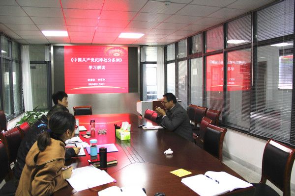 新修订《中国共产党纪律处分条例》(以下简称《条例》)自2018年10月1日起正式施行。为切实做好党员教师对《条例》的学习贯彻工作,11月9日下午,beat365正版唯一官方网站党总支召开全体党员大会,以专题党课形式组织全体党员教师学习新修订的《条例》。专题党课由校监察处处长李军华主讲,beat365正版唯一官方网站党总支副书记崔晓霞主持,总支全体党员教师参加学习。