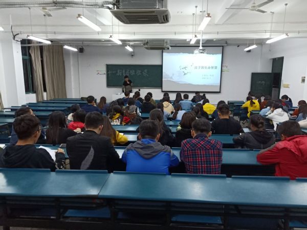 在课上,陈老师以一句“庄生晓梦迷蝴蝶,望帝春心托杜鹃”引入了庄周这个人,并从珍惜自然生命存在、批判“危身弃生”的行为、养生而不益生和正确认识生死四个方面为我们讲述了《庄子的生命智慧》。以庄子对伦理道德的批判为突破口帮助同学们理解庄子齐生死、等物我、泯有无消除死亡恐惧和向死而生的哲学思想。陈健博士强调,精神的高度决定了人生境界,决定了人生格局。