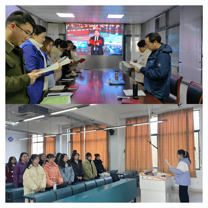 师生同声“读宪法”。宪法是国家的根本大法,是其他立法活动的最高法律依据。学院通过“宪法晨读”活动组织师生学习宪法,让师生知晓宪法的概念、法律特征、地位作用、基本原则等,了解宪法赋予公民的权利,进一步提高师生尊法守法的自觉性。在朗读宪法环节中,大家声音铿锵有力,展现了强烈的爱国热情与昂扬向上的精神风貌。