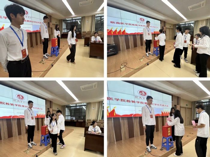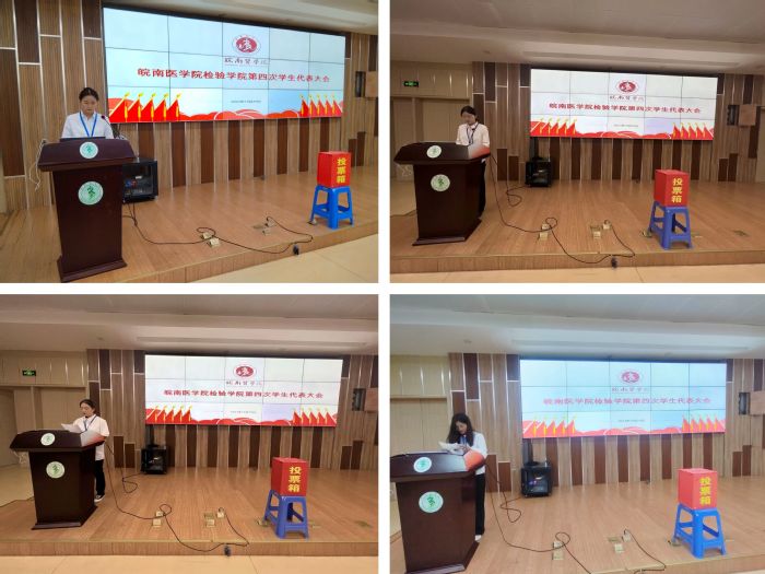 beat365正版唯一官方网站学生会主席团成员吴梦真同学代表上一届学生会作工作汇报。大会听取并审议了由大会工作筹备组侯非凡同学宣读的《皖南医学院beat365正版唯一官方网站第四次学生代表大会选举办法(草案)》、由主席团候选人李艳同学宣读的《关于皖南医学院beat365正版唯一官方网站第三届学生委员会工作报告的决议(草案)》。大会本着公平、公正、公开的原则选举并产生beat365正版唯一官方网站第四届学生会主席团成员和参加校第十六次学生代表大会代表。
