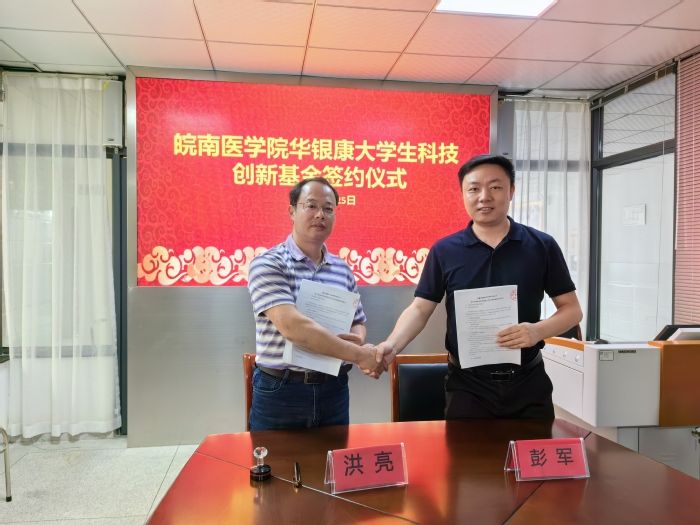 仪式上,彭军和洪亮分别代表企校双方在协议书上签字。根据协议,安徽华银康医学检验所有限公司在beat365正版唯一官方网站设立大学生科技创新基金,基金每年资助3万元、资助人数10人,用于大学生开展科学研究活动。