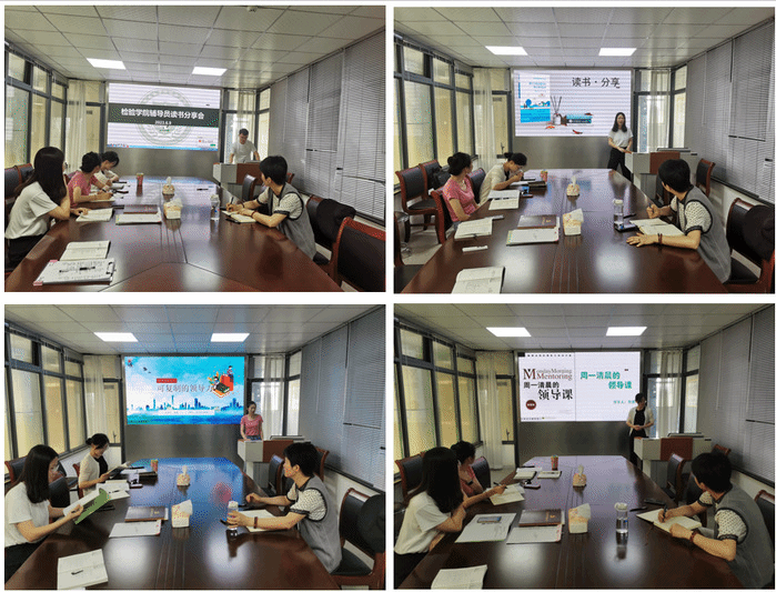 四位辅导员分别以《打破你的学生思维》《辅导员深度辅导的谈心谈话技术》《可复制的领导力》《周一清晨的领导课》四本书分享了读书内容,讲解了细节案例,总结了重点知识,发表了个人感悟,细节丰富,内容详实。