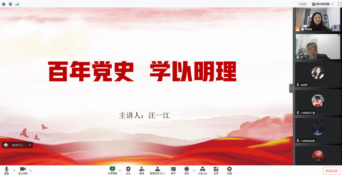 为深入学习贯彻党的二十大精神,进一步强化理论武装,常态化长效化开展党史学习教育,3月22日晚,beat365正版唯一官方网站邀请校关工委“五老”报告团成员汪一江教授通过腾讯会议作党史专题讲座,学院师生党员、发展对象、积极分子近200人在线聆听。